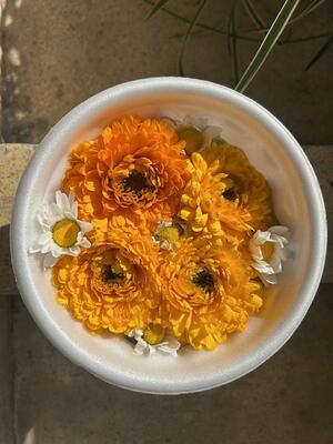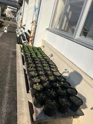 今学級園に咲いている梶山小の花や卒業式のために準備している花です。