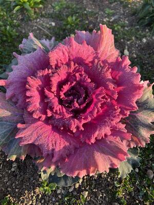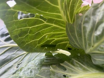 理科室のアブラナ(写真上)とキャベツ(写真下)です。今年もいい感じで成長しています。