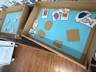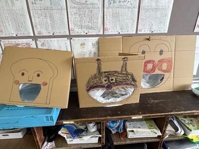 5年生教室に、保育所で園児とあそんだ手作り遊具がありました。