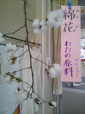くすのき学級に、貴重な学習教材である綿花が掲示してありました。
