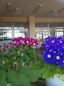 卒業式のためのサイネリアの花ももうすぐ満開をむかえますよ。