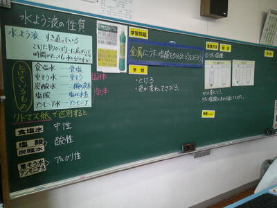 6年生が理科の授業をしていました。「水溶液の性質」という学習で、酸性やアルカリ性や中和についても学び、とてもおもしろい勉強だと思います。