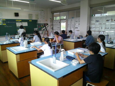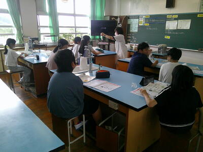 理科の先生が、安全面を配慮しながら授業を進められており、子供たちも安心して学習に取り組んでいました。
