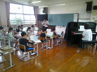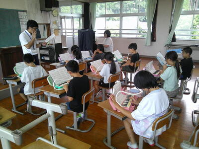 音楽主任の先生も授業に入り、10月30日(木)の音楽大会に向けて、けんばんハーモニカを中心にしっかり練習していました。