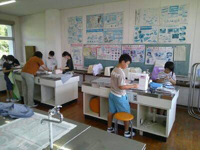 先週の授業の様子です。いよいよ、6年生がナップザックつくりに挑戦します。
