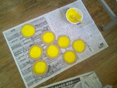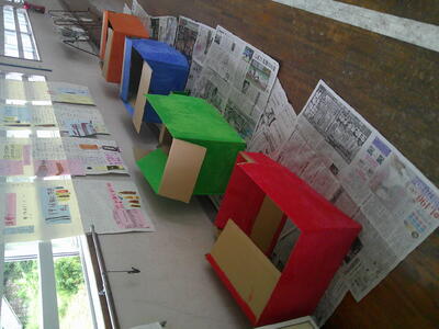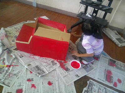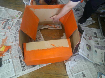 3年生が、図画工作の時間に、みんなで分担して何かを作製していました。