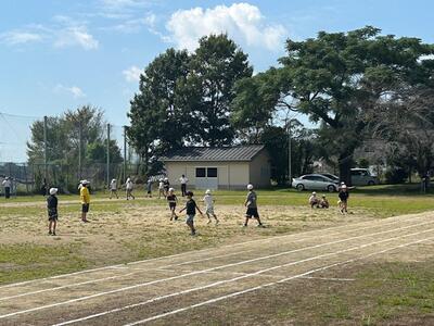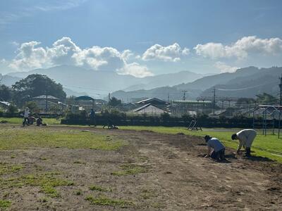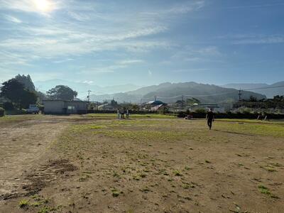 「梶山小応援隊」の方々に、2日前に整備していただいたばかりの運動場で、子供たちが気持ちよく走っている姿が印象的でした。