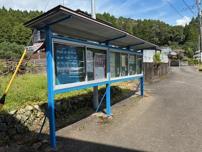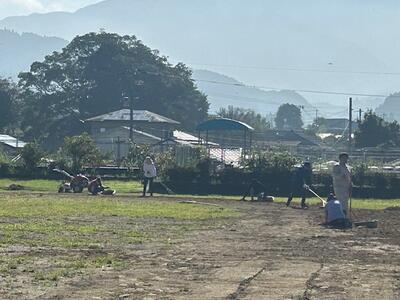 9月27日(土)に21名の保護者の方々が集まり、①駐車場や校舎内の草刈り、③運動場の整備、④掲示板のペンキ塗りを実施していただきました。