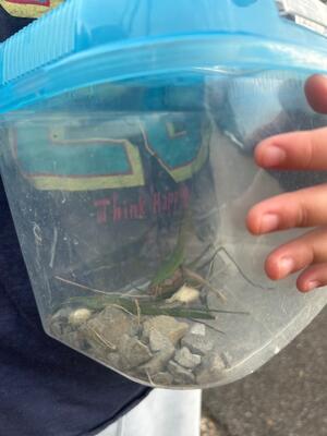 昨日、朝の登校指導をしていたら、1年生男子が宝物のように大事に虫かごを抱きしめながら登校してきました。カマキリでした。