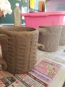6年生が紫麓窯の山下先生をお招きして陶芸体験しました。紫麓窯さんをはじめ、近くに窯元が連なる環境にある梶山小学校。いろいろな機会に体験させていただいているおかげで手際よくカップを作成していました。