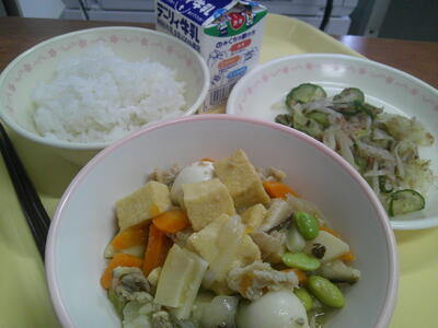 7月15日の給食は、「ちゅうかうまに、おかかあえ」でした。
