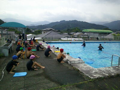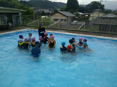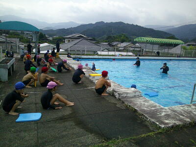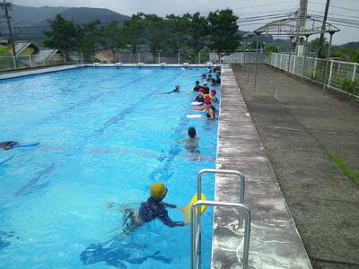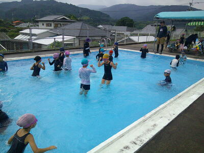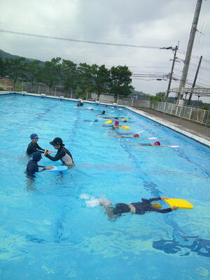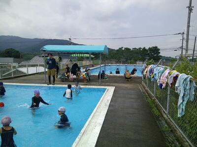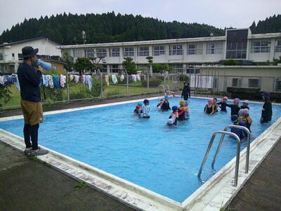 *写真は、小さいプールが1.2年生の学習の様子、大きいプールが3.4年生の学習の様子です。
