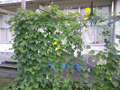 理科園のヒョウタンも成長がすごいです。ヒョウタンの実も、日々大きくなっています。