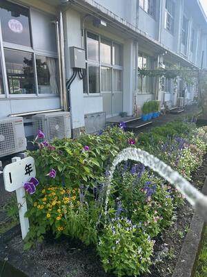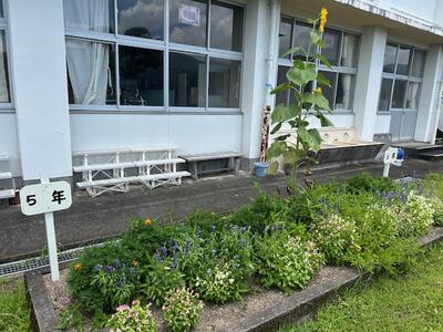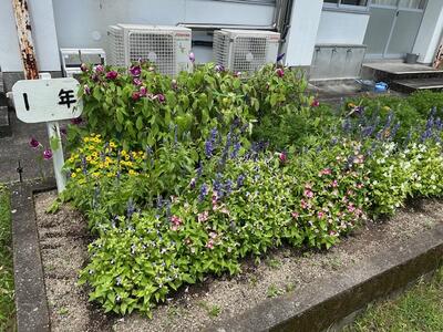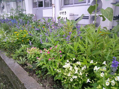 各学級園ですが、どの学級も様々な花が綺麗にさいています。今年の花は今までと花の選定を少し変えたからでしょうか、今までの梶山小の花壇の感じとは少し違うような気がします。今年もすてきな学級園になっています。
