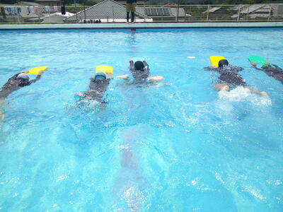 最終学年である6年生においては、めあてである①クロールができるようになる、②平泳ぎができるようになるが、だいぶ達成できました。