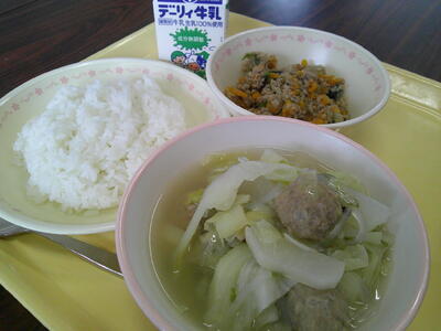 7月16日の給食は、「肉団子スープ、ガパオライス」でした。