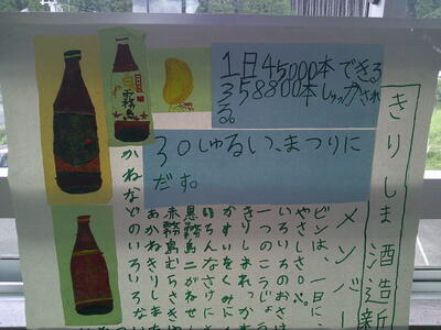 3年生が、霧島酒造に社会科見学に行きましたが、その新聞が掲示してありました。