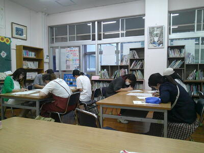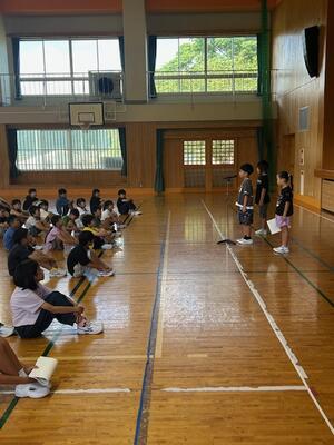 本日の終業式ですが、①1.3.5年生による1学期の振り返り作文、②校長の話、③先生方の話、④多読賞の表彰でした。