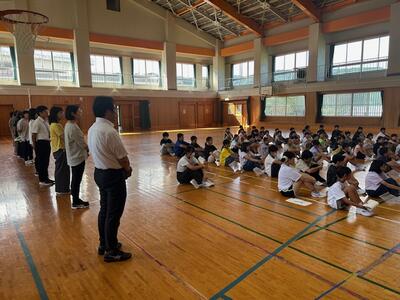 ③3人の先生方の話は、夏休みにしっかり自分の命を守ることについて、夏休みの健康的な生活の大切さについて、夏休みの宿題についてでした。3人の先生方が具体的に分かりやすく話をされました。
