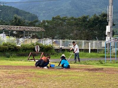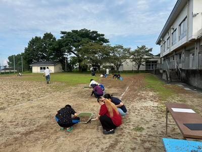 「梶山小応援隊」の方々に、2日前に整備していただいたばかりの運動場で、子供たちが気持ちよく走っている姿が印象的でした。