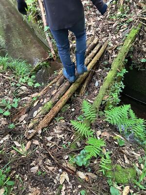 学校林に橋が架かっています。「栄光の架橋」という名前が付いています。