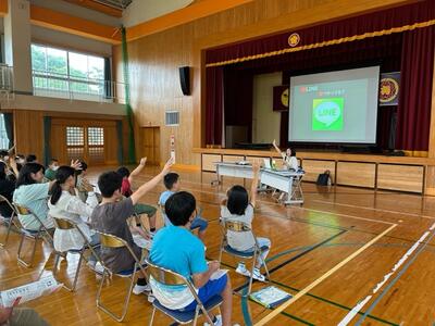 ■次に、夏休み中のお願いを2つします。1つ目は、お手伝いをしてほしいということです。七夕の時、3.4年生のささの葉かざりに「家族が元気でありますように」「家族が幸せでありますように」という短冊がありました。夏休みは、家族のために、家族の方々が、今よりも幸せで元気になるために、お手伝いをしてほしいと思います。■2つ目は、自分の命を、自分でしっかり守ってほしいということです。道路は危険な場所でもあります。道路を歩いたり自転車に乗ったりするときは、交通事故に十分気を付けてください。プールや海に行く人も、十分に気を付けて泳いでください。