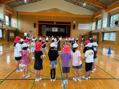 5.6年生が、運動会に向けて、俵踊りの練習をしています。昨年度の運動会は、棒踊りを披露しました。毎年、交互に、地域の2つの伝統芸能の練習に励んでいます。