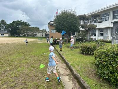 9月1日本日、1年生が運動場で生活科の授業をしていました。