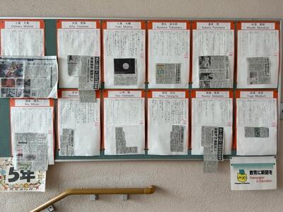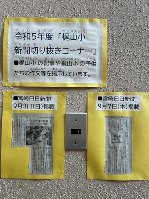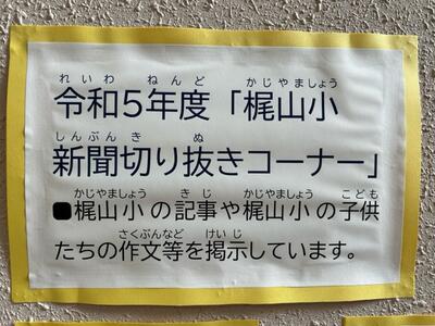2学期から、梶山小学校に「新聞の切り抜きコーナー」ができました。作文や俳句、その他、梶山小学校児童に関する記事を掲示するコーナーです。「たくさんの児童の作品等が、新聞に掲載されるといいな」と考えています。新聞に自分の名前や作品が掲載されることで、生涯にわたる大きな自己肯定感を感じる子供もいるのではないかと思います。
