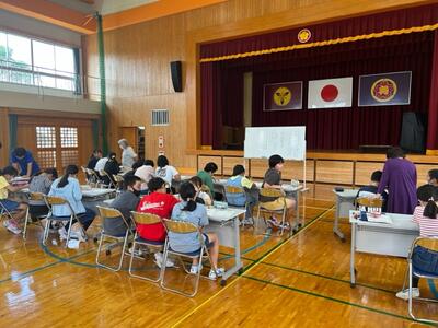 9月15日(金)、5.6年生は、短歌について勉強しました。「家庭倫理の会都城市」の4名の講師の皆様に短歌の指導をしていただきました。短歌の歴史や短歌のよさ、そして短歌のつくり方等、様々なことを教えていただきました。
