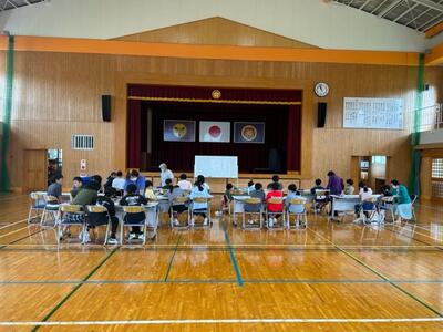 梶山小(12名)・宮村小(21名)・長田小(4名)の3校での宿泊学習が行われました。「しおかぜ追跡ハイキング」「ナイトウォーク」「フィールドアスレチック」や衣食住を通して、よき交流ができました。退所式では、所員の方に、「3校の宿泊学習は、最初からみんなが仲良くでき、しっかりと規律・協働・友愛・奉仕を実践でき、複数校合同での宿泊学習として最高の宿泊学習でした」という旨のお褒めの言葉をいただきました。