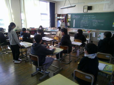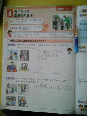 6年生が家庭科をしていました。「共に生きる地域での生活」という単元です。
