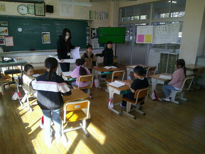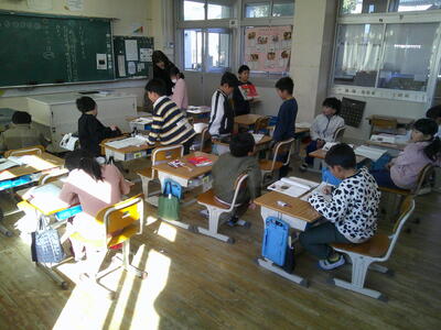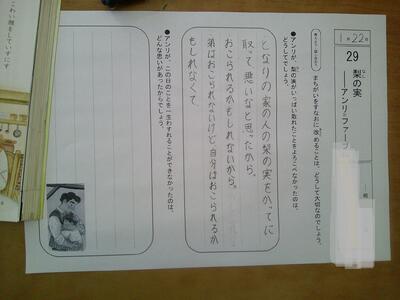 4年生が道徳をしていました。「梨の実」という題材で、正直さについての学習していました。