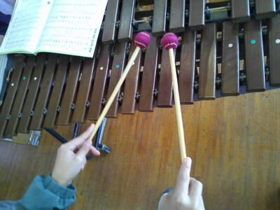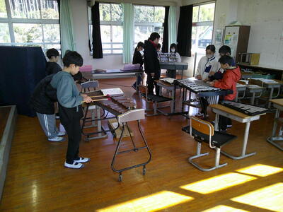 4年生が「茶色の小びん」の合奏の練習をしていました。
