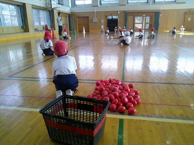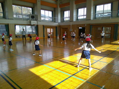 1.2年生が体育で「とっぱおに」をしていました。