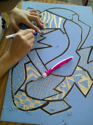 6年生も版画をしていました。彫り進める段階に入っていました。