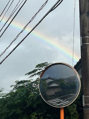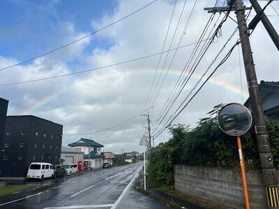 9月20日(木)の朝、県道33号線沿いから見えたにじです。
