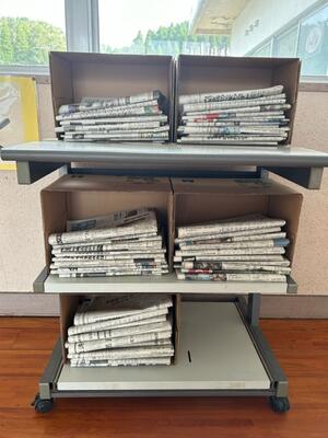 2学期は、5社の新聞が本校に届きます。過去の新聞はいつでも見ることができます