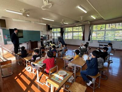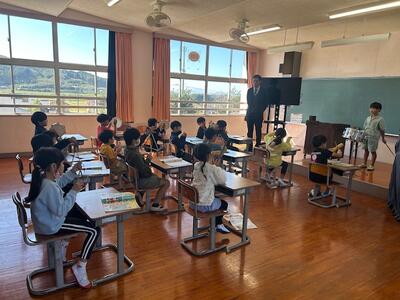 2年生が、音楽の時間に、音を楽しんでいました。まさしく音楽でした。