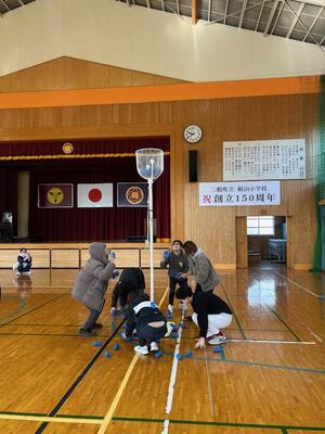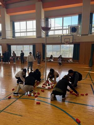 *梶山小アジャタ➡アジャタは、全日本玉入れ協会が制定した公式ルールに基づくスポーツ玉入れです。当日は、6人でチームをつくり、合計99個のアジャタボールをバスケットに入れ、最後にアンカーボールを入れ終わったタイムを競いました。