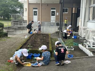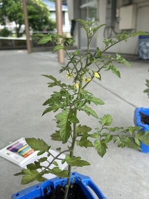 先週のことですが、6月7日(金)午前中に、2年生が生活科で自分たちが育てているミニトマトの観察をしていました。