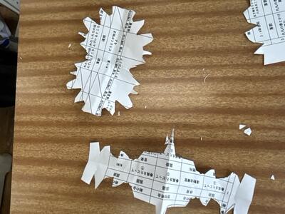 細かくはさみを動かす難しそうな活動でしたが、みんな、慎重にはさみで切っていました。