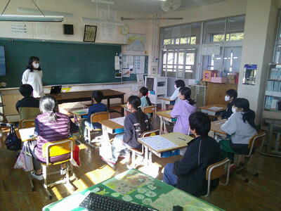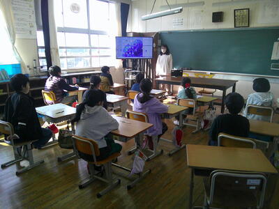 5年生教室でも、学級担任が、冬休みの話をされていました。