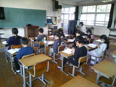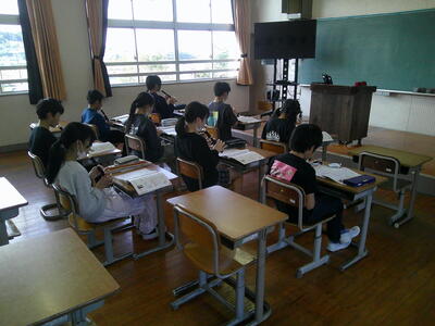 5年生が、音楽の授業で「威風堂々」をリコーダーで演奏していました。