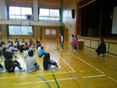 終業式では、1.3.5年生代表児童が、「2学期を振り返って」という題材で作文発表をしました。