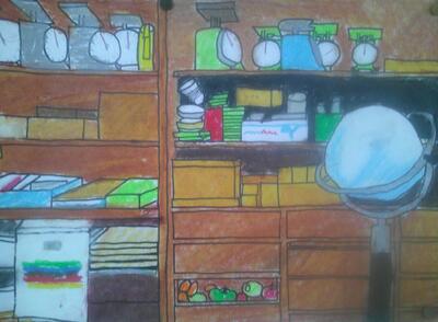 6年生が、図工で「お気に入りの場所」というテーマで作品をつくっていました。
