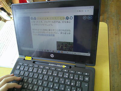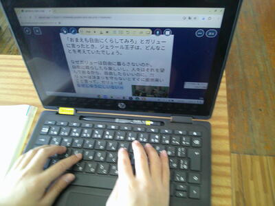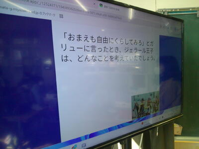 ガリュー、ジェラール王子などの主人公が出てきます。子供たちは、ジェラール王子の気持ちを、パソコンに入力していました。