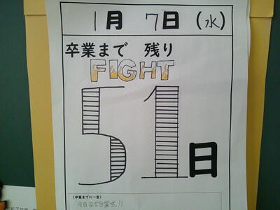 1月7日本日現在、学校に来る日数が、あと51日だそうです。