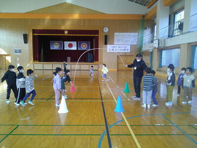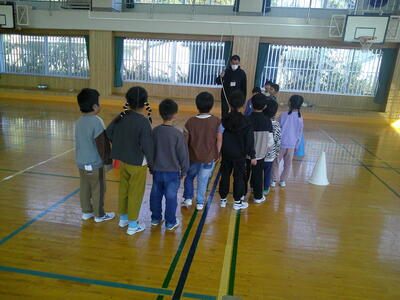 1.2年生はいま「なわとびブーム」のなかにいますが、今日は、生活科で長なわとびをしていました(生活科のむかしのあそびの授業でしたので、他のあそびをしていた児童もいました)。