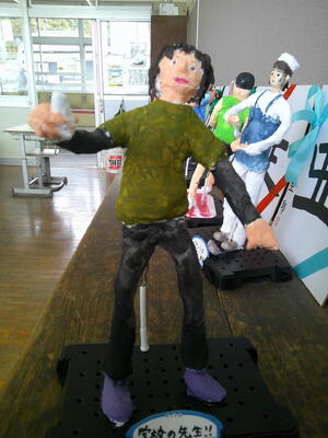 6年生の図工「ポーズ芯」制作が終わり、教室に展示してありました。